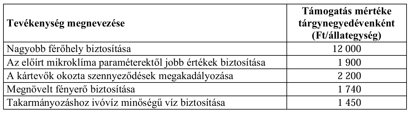 A támogatás állategység alapján, - a táblázatban felsorolt - tevékenységenként igényelhető. A tenyészkoca egyedenként 0,5 állategységnek felel meg.