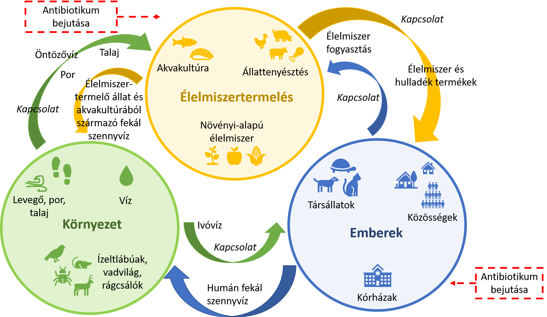 Minden évben november 18-a az antibiotikum világnapja. Ennek apropóján hirdette meg az Állategészségügyi Világszervezet (WOAH) a „Világ Antimikrobiális Rezisztencia Tudatossági Hete” elnevezésű kampányát november 18 és 24 között. A kezdeményezés a „One Health – Egy egészség” megközelítést állítja középpontba, amely az emberi, állati, növényi és környezeti egészséget egységként kezeli. Ennek jegyében ajánljuk az EFSA szemléletes ábráját, amely jól mutatja: az AMR problémája minden szektort érint, és csak közös fellépéssel kezelhető.