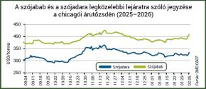 Az Oil World januári előrevetítésében 426,6 millió tonna globális szójababtermést jelez a 2025/2026. gazdasági évre. Ez a kibocsátás 1,3 millió tonnával haladhatja meg a 2024/2025. évi termést. Az északi félteke termelését 2 százalékkal alacsonyabbra, 177,8 millió tonnára jelzik, ezzel szemben a déli féltekén 2 százalékkal több termés (248,8 millió tonna) kerülhet a tárolókba.