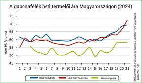 A Nemzetközi Gabonatanács (IGC) májusi előrevetítésében 795 millió tonnára jelzi a búza 2024/2025. gazdasági évre vonatkozó globális termését. A várható felhasználás 801 millió tonna lehet, és 260 millió tonna búza maradhat a tárolókban a szezon végén. Kukoricából a 2022/­2023. évitől 5 millió tonnával elmaradó, 1220 millió tonna globális kukoricatermést vetítenek előre a 2023/2024. gazdasági évben. A felhasználás 1225 millió tonna lehet, és 281 millió tonna kukorica maradhat a tárolókban.