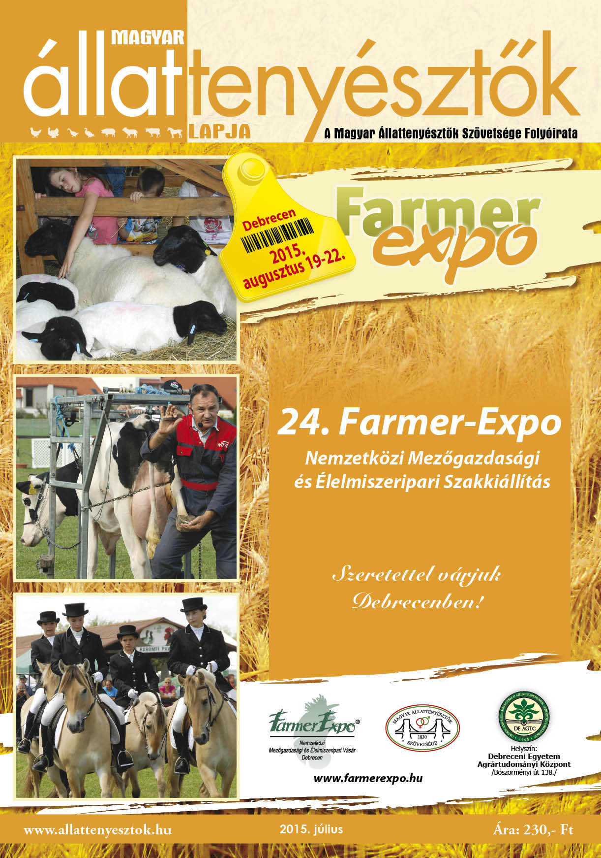 Aktuális tartalmunkból: Vezércikk - Szeptemberben OMÉK?Aktuális - Magyar állattenyésztés: ahogy a bankok látjákAktuális - Leggazdagabb magyar agrárvállalkozókAktuális - Amit tudni lehet az EU – USA szabadkereskedelmi megállapodásrólAktuális - GMO mentességünk lehetőségei Tejtükör - Néhány tényező hatása eltérő holstein-fríz génhányaddal rendelkező tehenek életteljesítményéreTejtükör - Magyarországra jönnek a legjobb holstein küllemi bírálók Gulyásostor - Magyartarka szakmai nap SzentkirályonTakarmányozás - Még egyszer a DDGS-rőlHídlás - Utódállományok állat- egészségügyi menedzsmentjeHídlás - Fel kell zárkóztatni a magyar sertéstenyésztést Istráng - A fényes múlt újabb sikert ígérIstráng - Sikeres volt a Derby és Gasztroangyal fesztivál Vidékfejlesztés - Amit az új Vidékfejlesztési Programról tudni kellJuhászkampó - Van-e létjogosultsága a magyar parlagi kecskének? 2. részJuhászkampó - Tájékoztató a kéknyelv betegség elleni vakcinázásrólVásártér - Egyre több tejet termelünkArcél - Baracskay Lajos