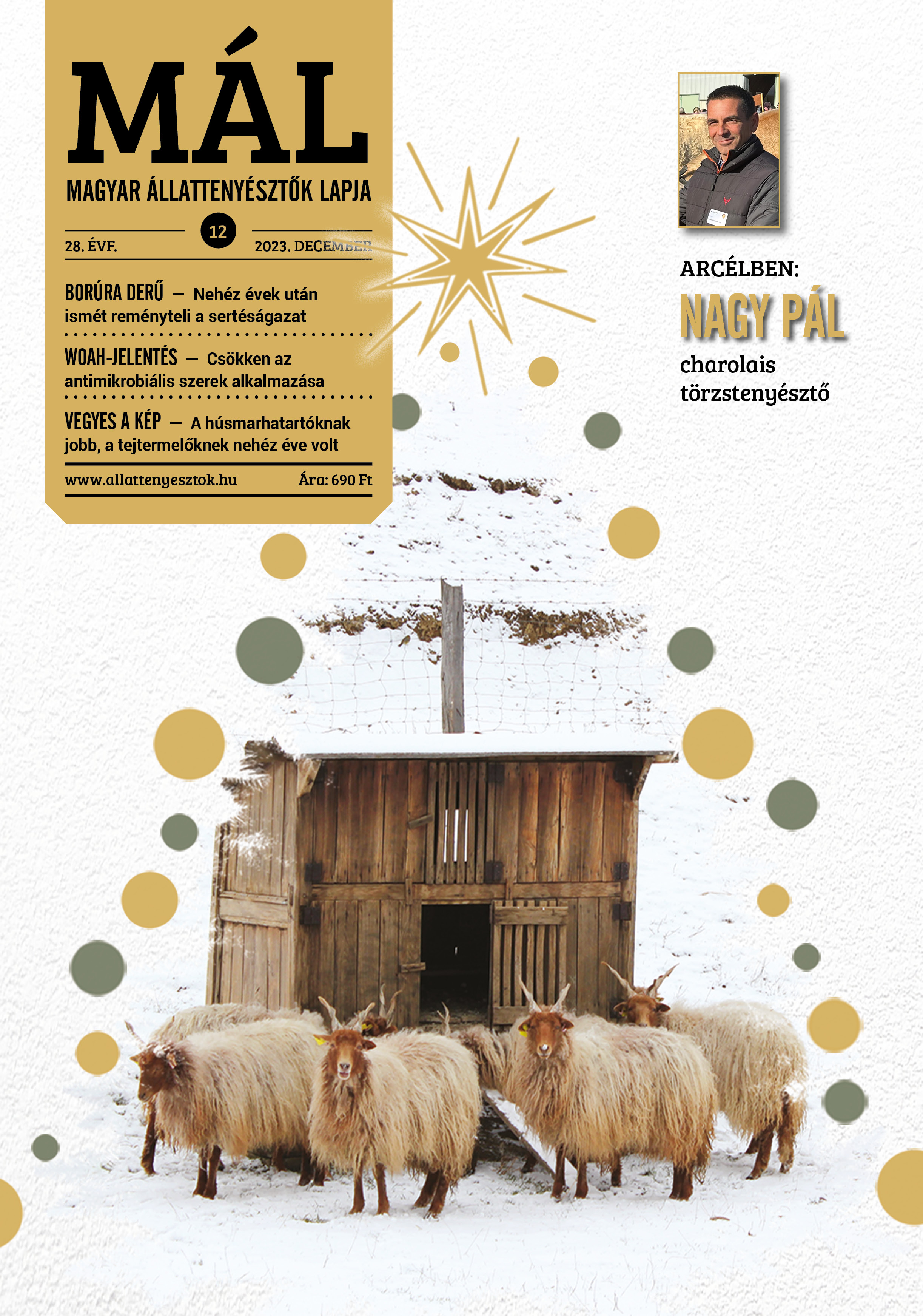 Aktuális tartalmunkból: Vezércikk - Ennél rosszabb évünk soha ne legyen!Időszerű - Nehéz évek után ismét reményteli a sertéságazat jelene és a jövőképe Időszerű - A húsmarhatartóknak jobb, a tejtermelőknek nehéz éve voltIdőszerű - Jók az árak, mégis csökken a juhok számaIdőszerű - Sikeresek és keresettek a magyar lovak, de a támogatásokra továbbra is szüksége van az ágazatnakKözepes évet zárnak a haltermelőkFenntarthatóság - Adatvezérelt, fenntartható sertéstartásSertéspiac - Átrendeződő ágazat: további visszaesés az európai sertéshúspiaconSertéshúskampány - Ünnepeljünk malaccalAkvakultúra - Gorda Sándor: Aki mindent tud a ponty teljesítményvizsgálatárólKamara - Világszerte csökken az állatok esetében alkalmazott antimikrobiális szerek használataLépesméz- Bíztunk benne, hogy elértük a gödör alját, de sajnos a jelek nem ezt mutatjákGulyásostor - Sokan vásároltak 2023-ban is limousin és blonde d’Aquitaine tenyészbikátVásártér - A juhhús globális piacán továbbra is Ausztrália és Új-Zéland a legnagyobb exportőrArcél - Nagy Pál500 Ft